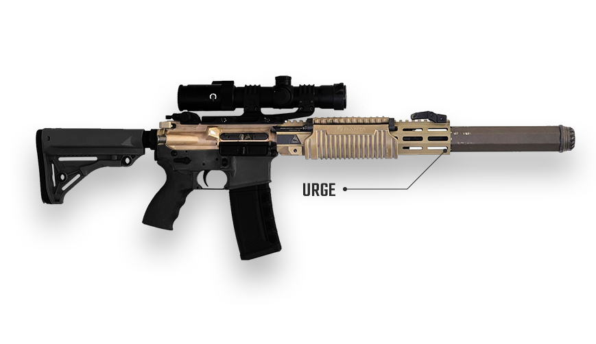 The FERFRANS M4 URGE is an M4A1 compatible complete upper receiver group using a short-stroke adjustable piston system with a rate reduction system for controlled rate of full auto fire. It is also capable of firing high capacity magazine.